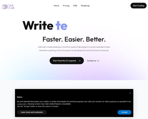 AskCodi是一个基于AI的代码生成助手,该工具理论上可以帮助你完成任何编码工作。从生成代码到解释代码背后的逻辑,从开发WordPress网站到创建一个应用程序,甚至重构你现有的代码,Codi将是你整个编码之旅的伴侣,大家快来AI365导航!