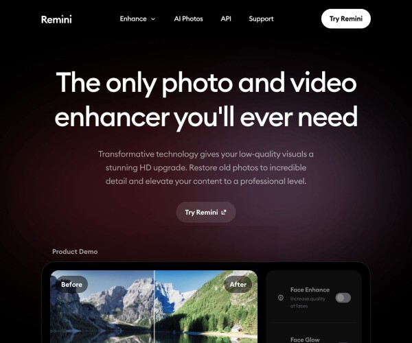 Remini是一个借助AI技术将模糊照片变高清和老照片修复的工具,该AI修图工具在全球累计已超过数百万人使用。Remini利用先进的AI算法,分析照片中的现有元素并智能填补缺失的图像细节,如增强纹理、校正颜色和平滑边缘等,以使照片中的主体和对象更加清晰,从而提升图像的画质和清晰度。该工具支持移动端APP和网页版使用,适用于修复家庭旧照片、提高低分辨率相机拍摄的图像质量、从网络下载的模糊图片、修复因年久失修或保存不当而损坏的照片,大家快来AI365导航!