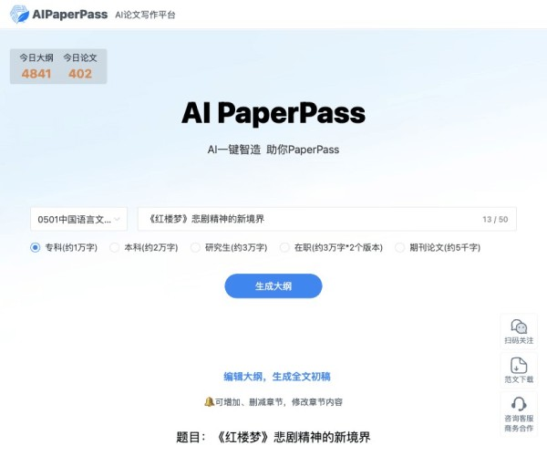 千笔AI论文(原AIPaperPass)是一个一站式AI论文写作平台,可以帮助用户一键快速生成论文大纲和初稿,旨在简化学术写作流程,让论文撰写变得轻松便捷。该工具融合了先进的AI技术与丰富的学术资源,为用户提供了全面的论文写作支持,包括但不限于论文写作辅助、研究建议与指导、文献综述生成和论文修订与优化,大家快来AI365导航!
